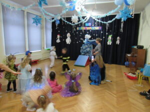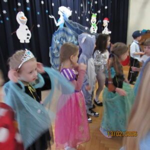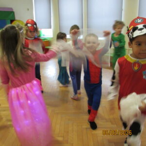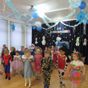 Bal karnawałowy „W mroźnych krainach zimy” w naszym przedszkolu był dniem pełnym radości, muzyki i kolorowych wrażeń. Już od rana sale wypełniły się bajkowymi postaciami, superbohaterami, księżniczkami i wieloma innymi fantastycznymi bohaterami. Dzieci z dumą prezentowały swoje stroje, a wspólna zabawa przy muzyce dostarczyła wszystkim mnóstwo uśmiechu i pozytywnej energii.