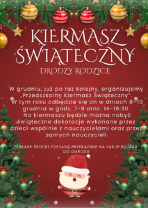 W grudniu, już po raz kolejny, organizujemy „Przedszkolny Kiermasz Świąteczny”.