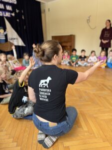 Wolontariusze, którzy na co dzień ratują i otaczają opieką bezdomne koty, przybliżyli dzieciom świat zwierząt potrzebujących pomocy. Podczas spotkania Panie w przystępny i ciekawy sposób opowiedziały o tym, jak ważne są empatia, wrażliwość oraz odpowiedzialne zachowanie wobec zwierząt.